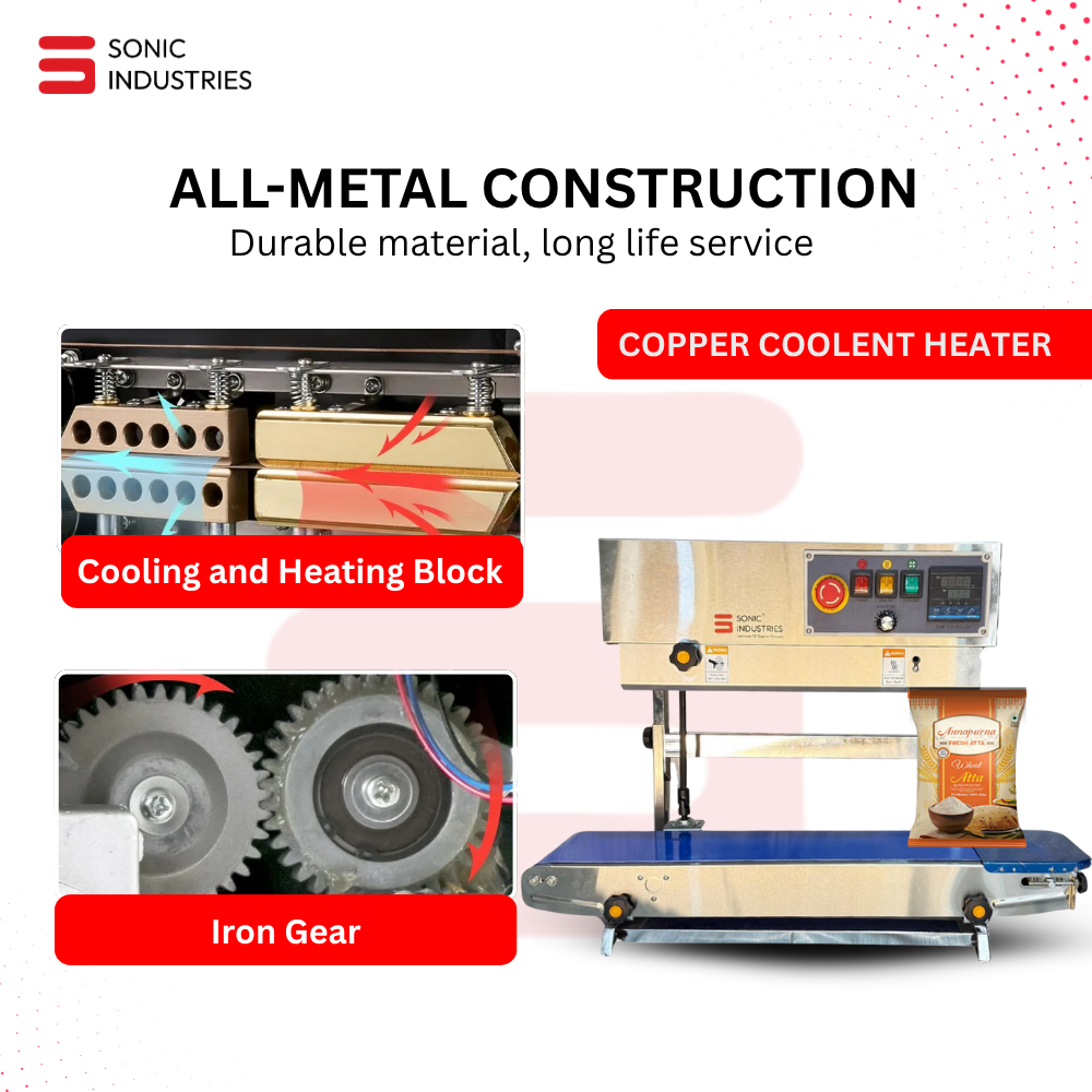 In today’s fast-paced manufacturing world, efficient and consistent packaging is vital for product preservation, shelf appeal, and distribution efficiency. The Sonic Industries FR 900 Vertical Band Sealer stands as one of the most reliable solutions for vertical sealing operations. Designed to seal various pouch types — including polyethylene, laminated, and foil pouches — it’s a versatile and powerful choice for businesses that demand high output and professional sealing quality.