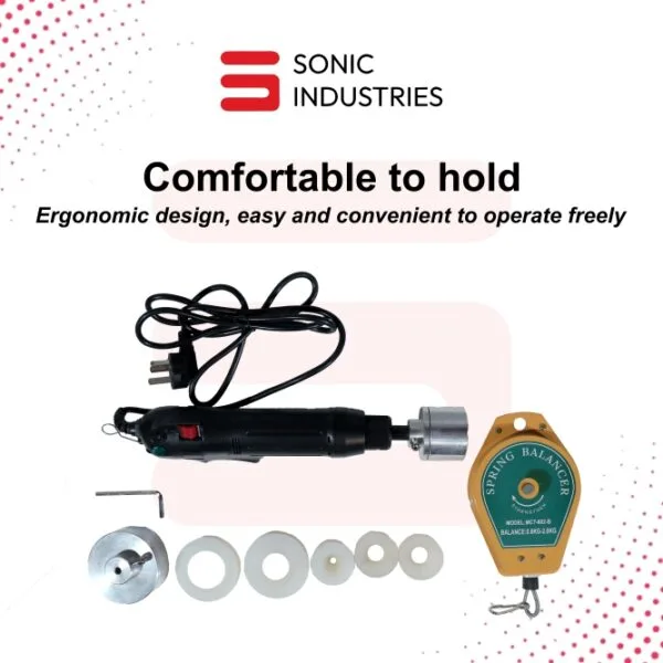 Sealing bottles accurately and securely is a key step in any packaging line—whether you’re bottling pharmaceutical liquids, beverages, oils, or cosmetics. The Electric Bottle Capping Machine by Sonic Industries is engineered to meet the capping demands of modern production units. Compact, powerful, and easy to operate, this electric capper ensures precision tightening and secure sealing across a variety of cap sizes and bottle types.