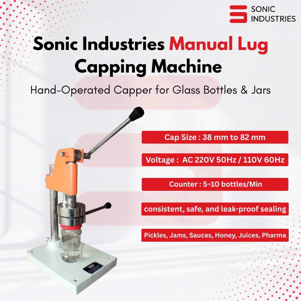 Efficient packaging is one of the cornerstones of every successful food, beverage, and pharmaceutical business. In industries where glass jars and bottles are the standard, ensuring a secure, airtight, and tamper-proof seal is vital to maintain product freshness, quality, and shelf life. That’s where the Sonic Industries Manual Lug Capping Machine – Hand-Operated Capper for Glass Bottles & Jars comes in.