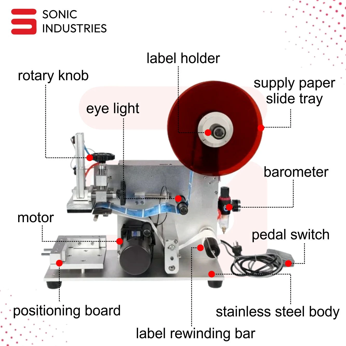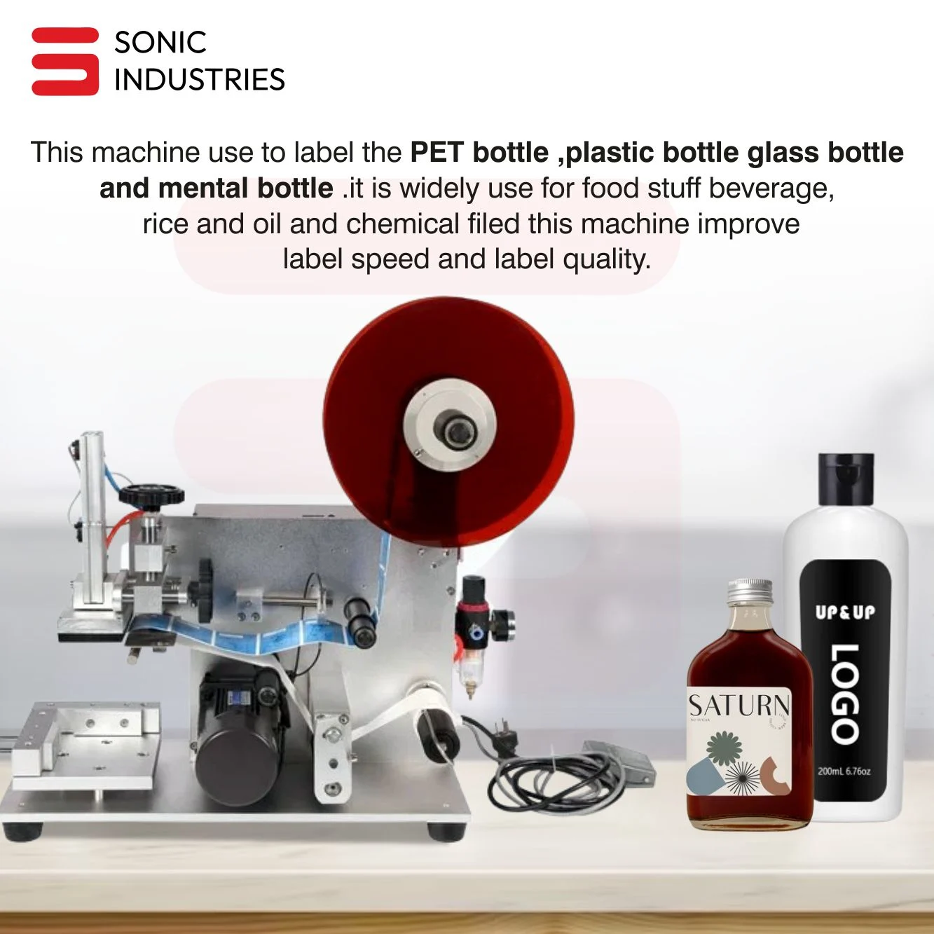 Sonic Industries MT-60 Semi-Automatic Flat Bottle Labelling Machine with Inkjet Printer – Labeling & Coding in One Compact Unit