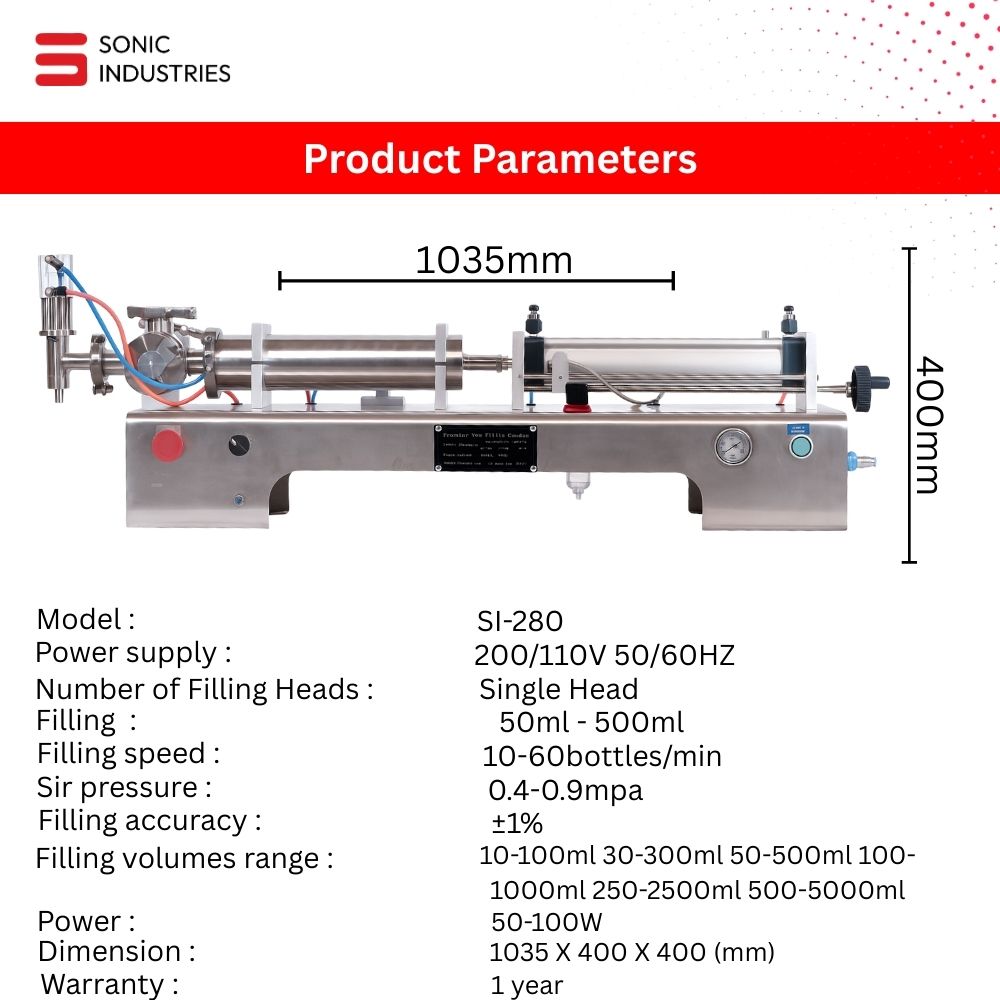 Sonic Industries 50 to 500ML Pneumatic Liquid Filling Machine