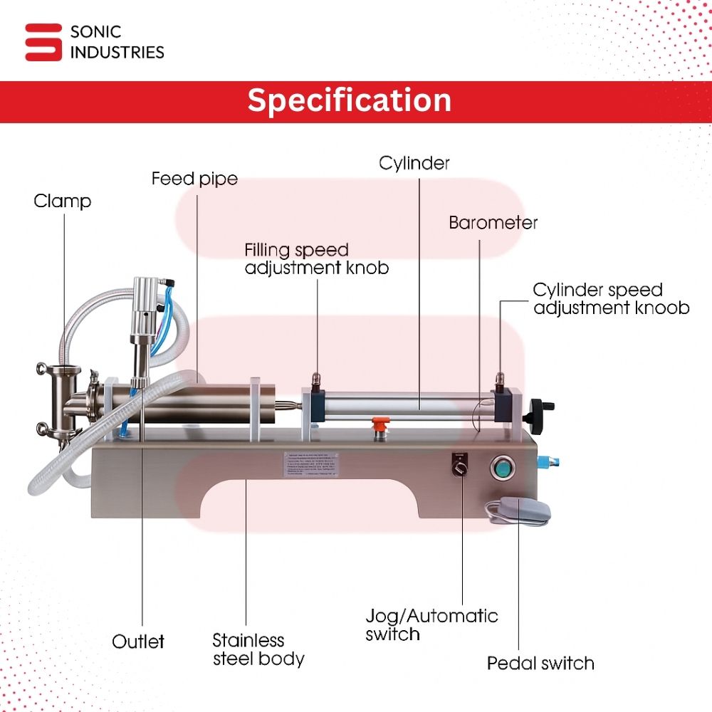 Model: Sonic Industries 50 to 500ML Pneumatic Liquid Filling Machine