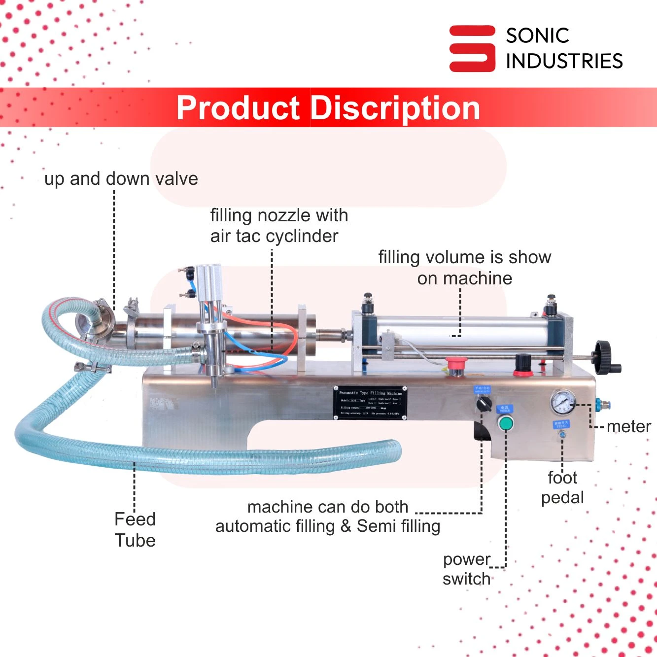 Thanks to its precision-engineered pneumatic piston, the machine maintains uniform fill levels, ensuring each container is filled to the desired capacity. This reduces product waste and enhances the consistency of your packaging line.