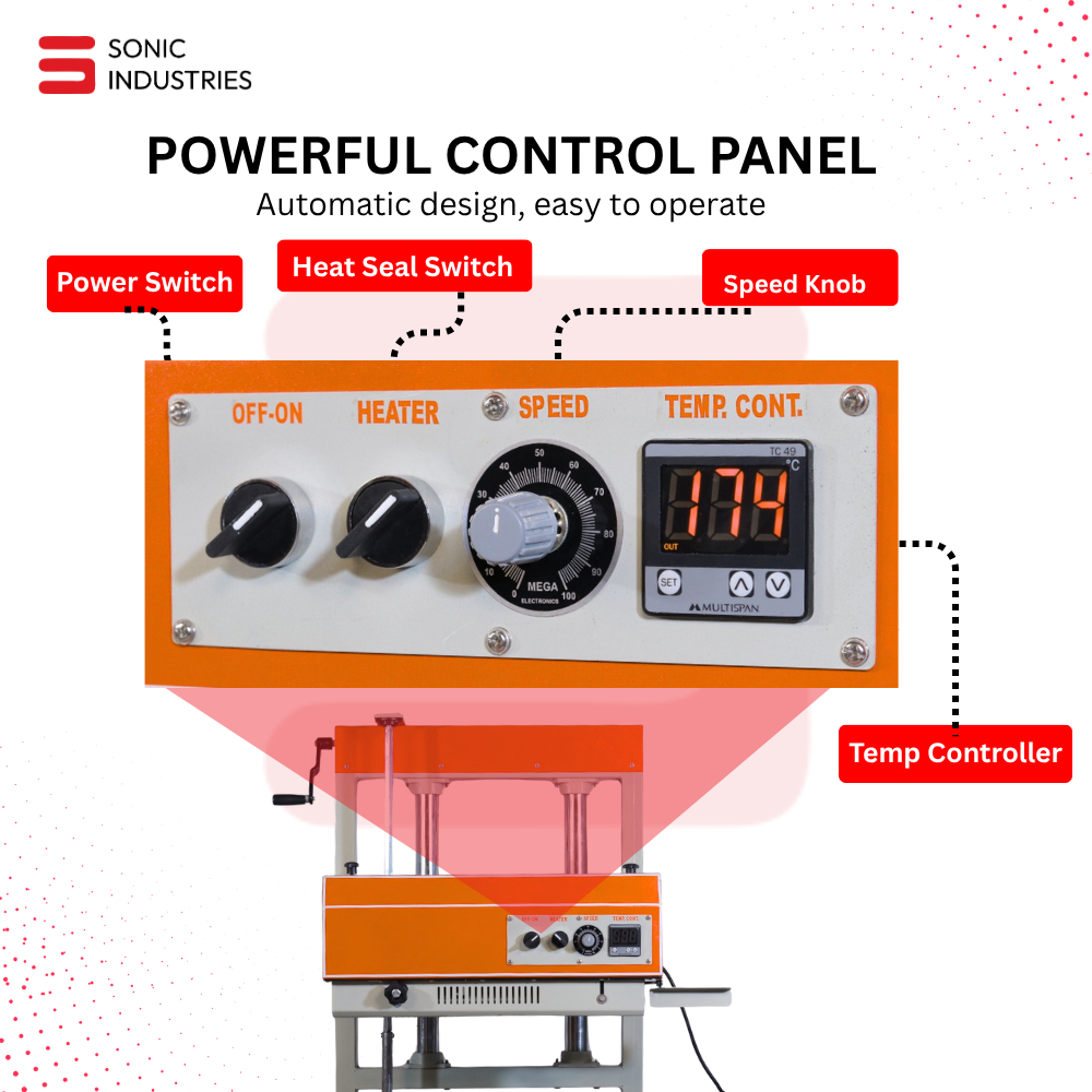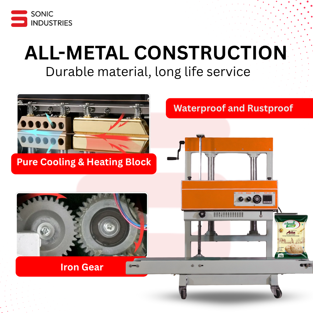 The Sonic Industries 25KG Band Sealing Machine stands out for its solid engineering. Constructed using industrial-grade mild steel with a powder-coated finish, it offers corrosion resistance and long operational life.
