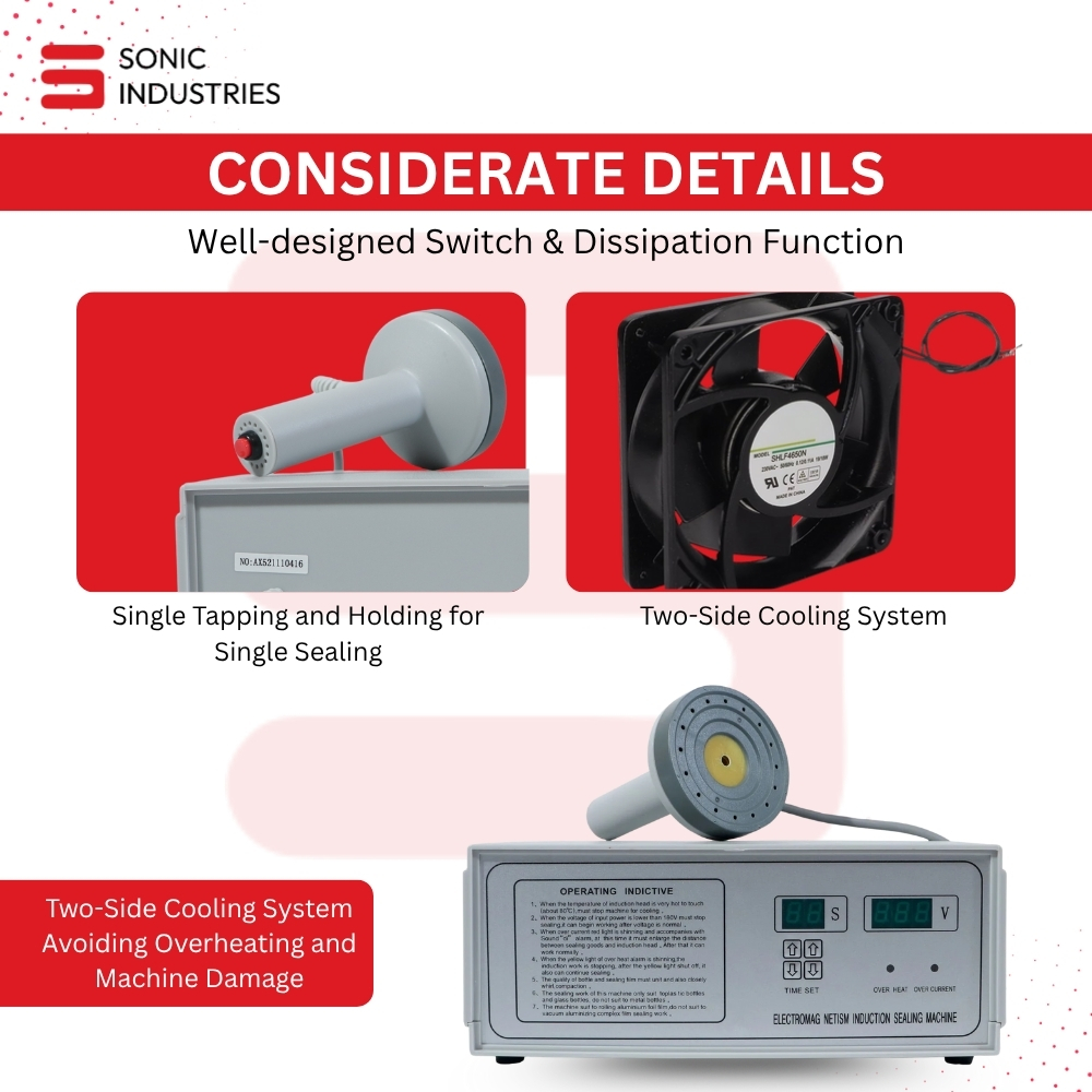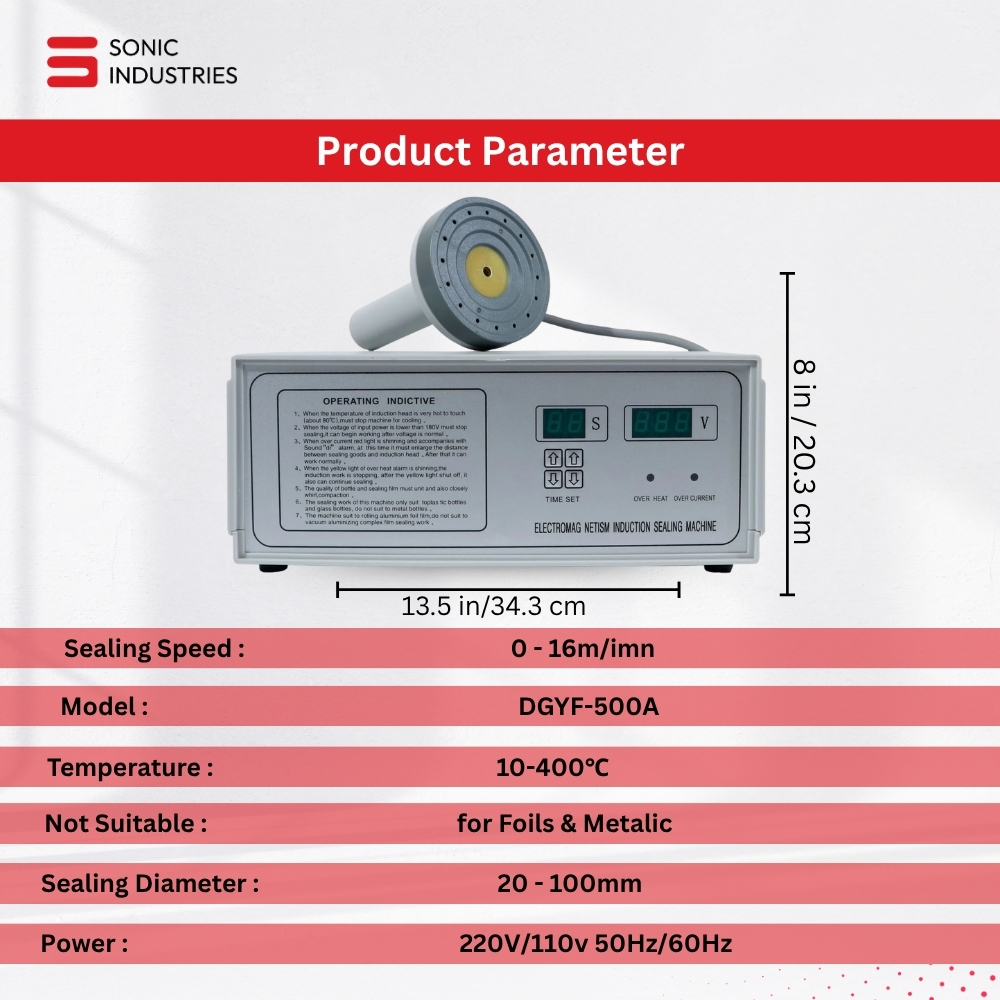 In today’s competitive manufacturing and packaging environment, product integrity, safety, and presentation are non-negotiable. A tamper-proof seal is no longer just a regulatory requirement—it’s a brand promise to customers. That’s where the Sonic Industries 500A Induction Sealing Machine steps in, offering unmatched sealing performance for caps ranging between 20mm to 100mm in diameter.