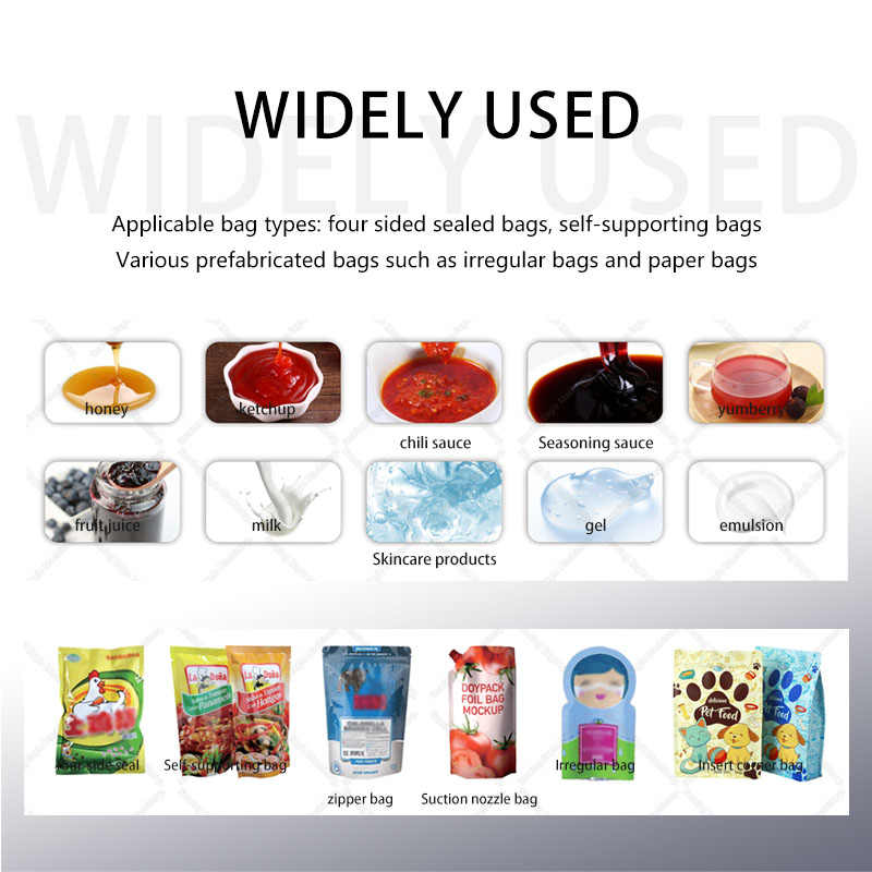 Adjustable Filling Range: 50g–500g capacity for small to medium pouches.