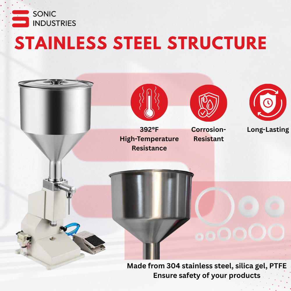 When you purchase the Sonic Industries Pneumatic Paste Filling Machine 5–50ML, you receive: