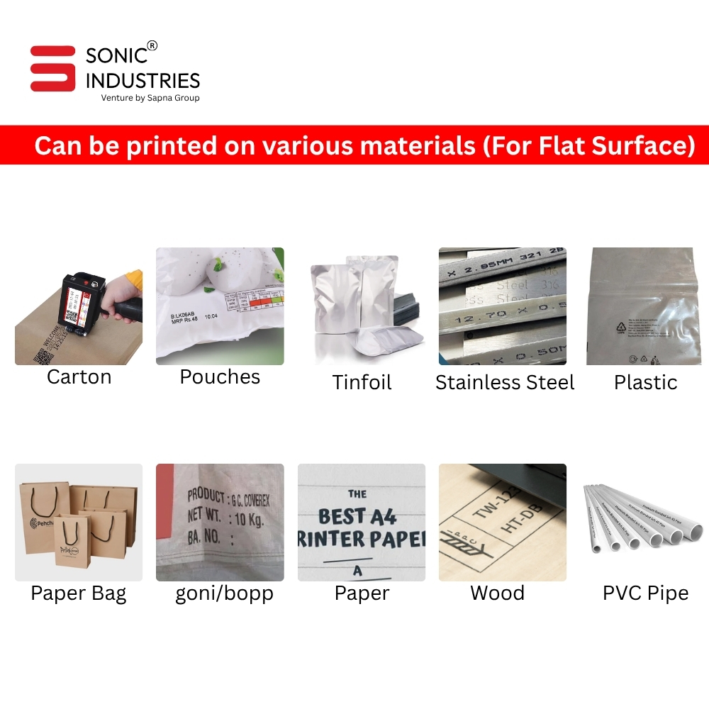 The Sonic Industries 50MM Handheld TIJ Printer is suitable for diverse industries, including: