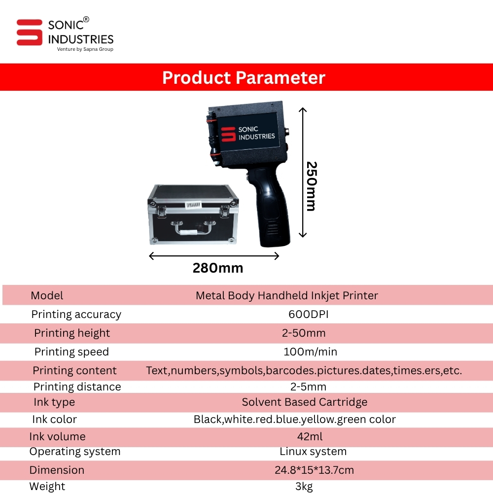 • Model: Sonic Industries 50MM Handheld Thermal Inkjet Printer