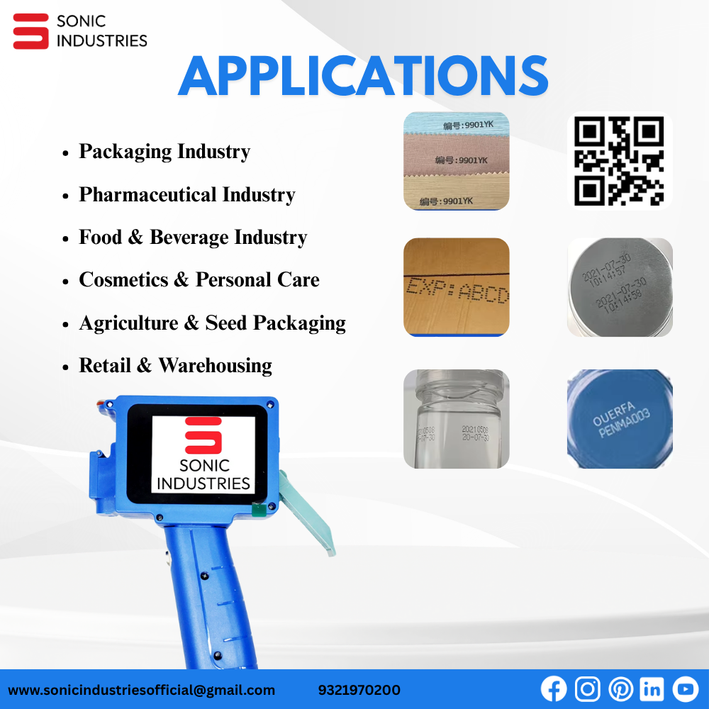 | Food & Beverage | Printing MRP, expiry date, batch number on pouches, wrappers, bottles |