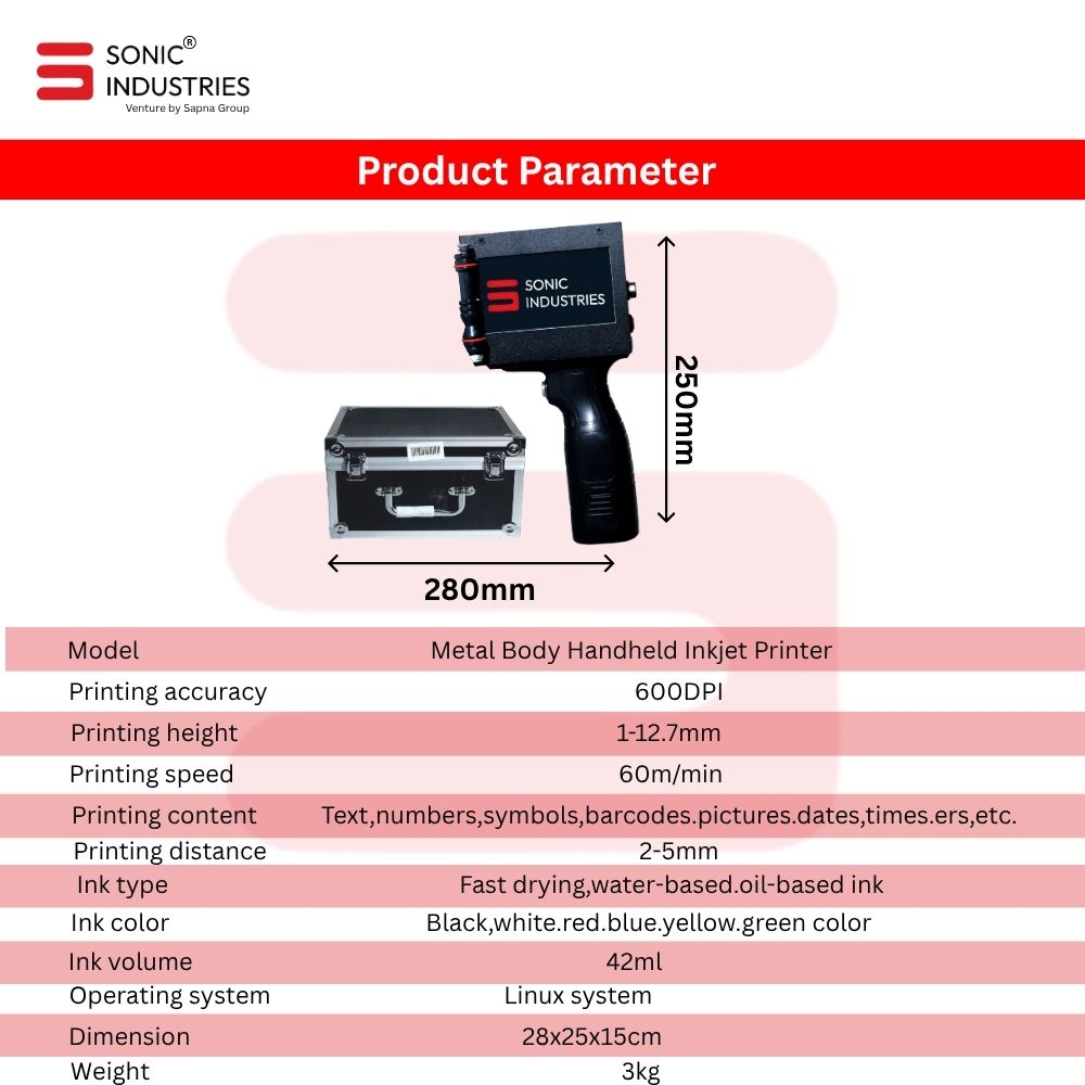 With its compact design, user-friendly interface, and versatile applications, the Sonic Industries handheld TIJ printer is the perfect combination of power, performance, and portability.