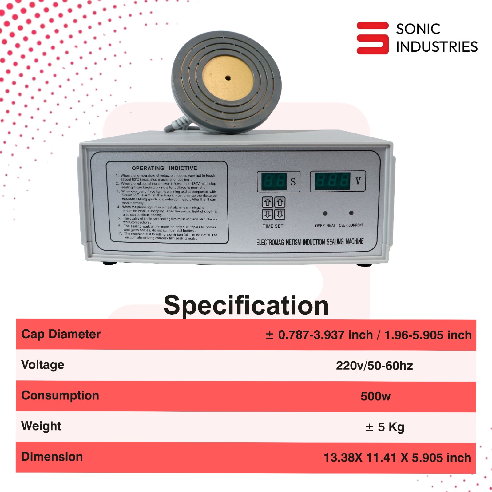 | Printer Name | Sonic Industries 500C Heavy Duty Induction Sealing Machine |
