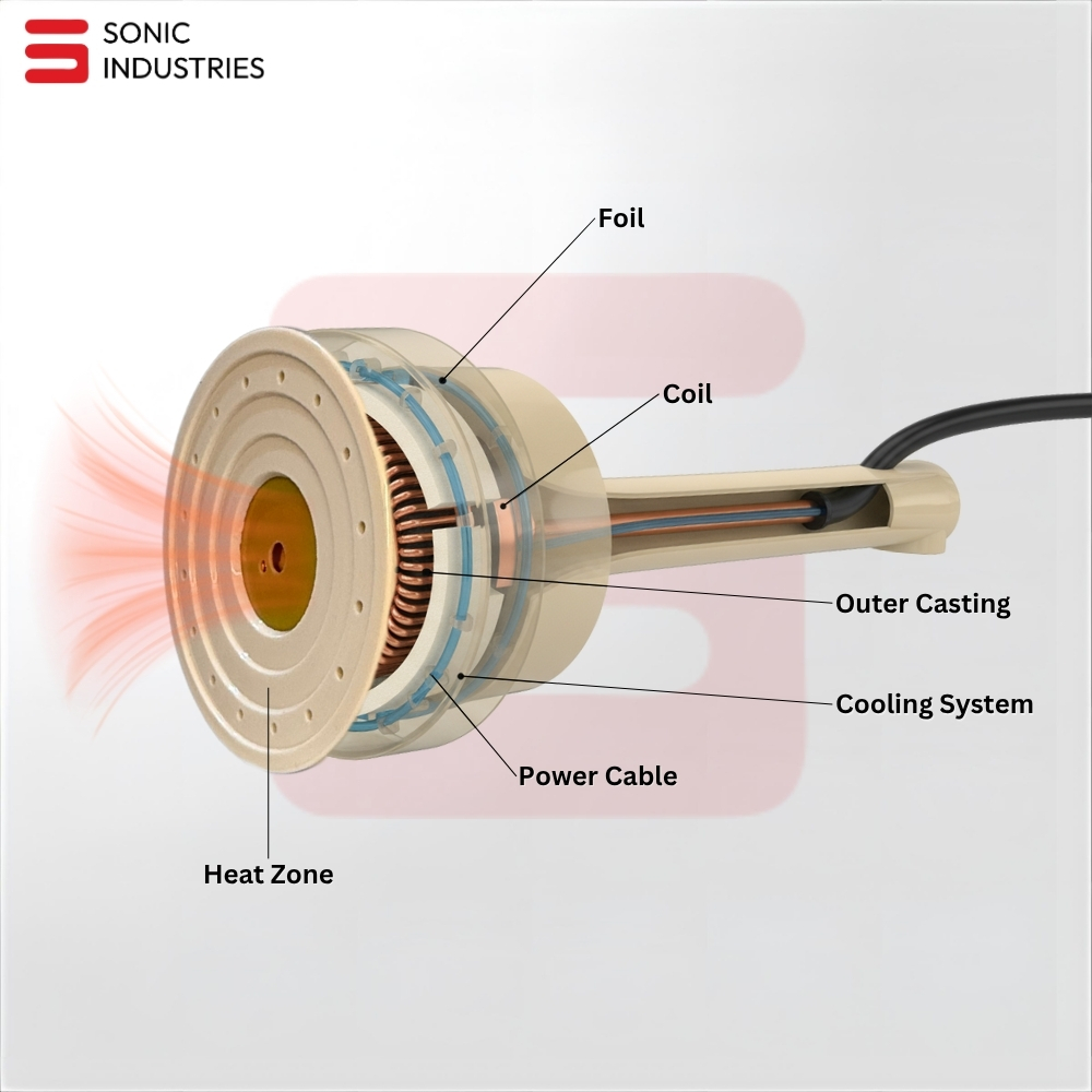 Electromagnetic Induction – The sealing head generates a magnetic field.