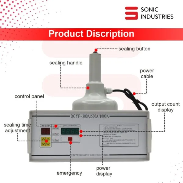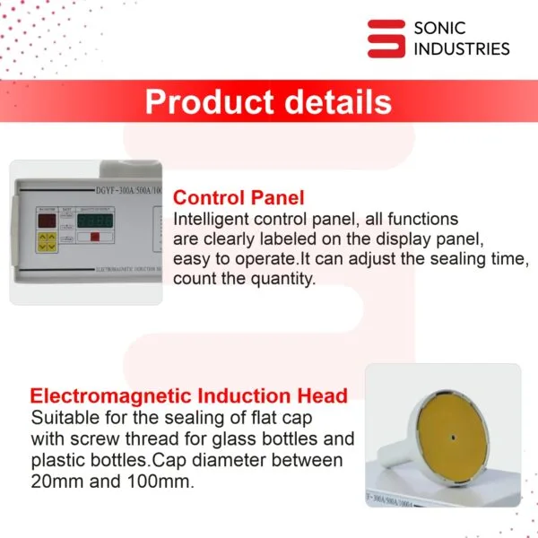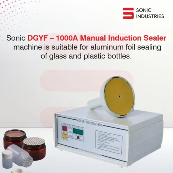 The DGYF 1000A Induction Sealing Machine by Sonic Industries is a powerful, semi-automatic electromagnetic sealing system designed for medium- to large-scale packaging operations. This advanced model offers fast, reliable, and contactless foil sealing for a wide range of plastic and glass bottles.